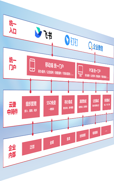 对协作平台提供支持服务,,,,支持企业应用与协作平台对接,,包含组织同步、、消息集成、、待办集成等。。。支持目前主流的协作平台:钉钉、、、、企微和飞书。。。